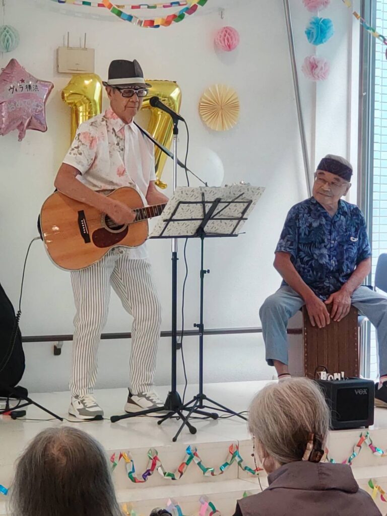 <メッセージ>50歳後半でバンドのヴォーカルを担当。後に高齢者施設でギターで歌うボランティア活動を始め、高齢者が高齢者に歌を届けています!80歳になりますがもう少し頑張ります!