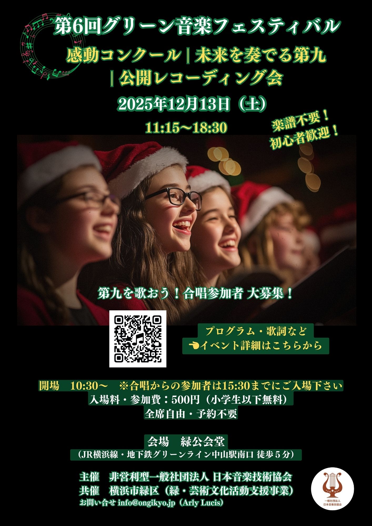 未来へ響く音の輪に、あなたの声を。12月13日、緑公会堂でお待ちしています。